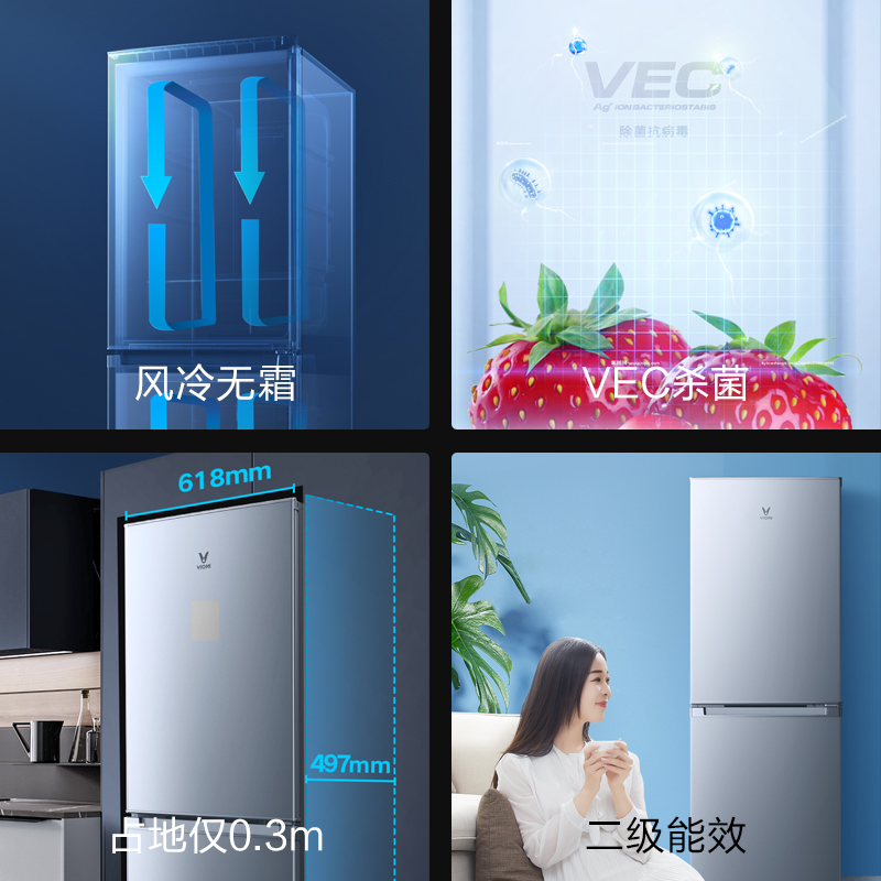 Yunmi 186L household two-door two-door energy-saving silent small rental dormitory air-cooled mini refrigerator
