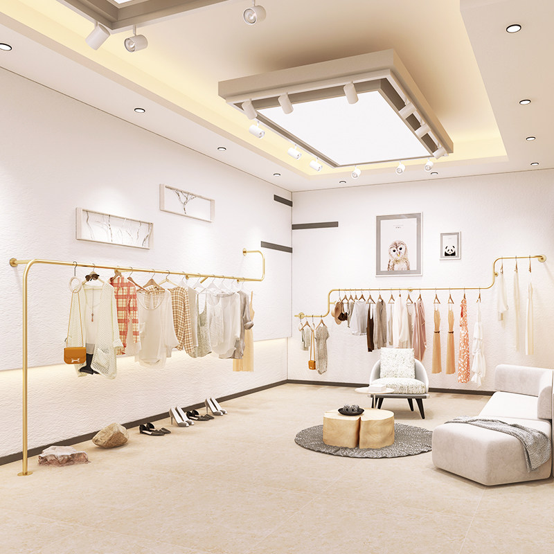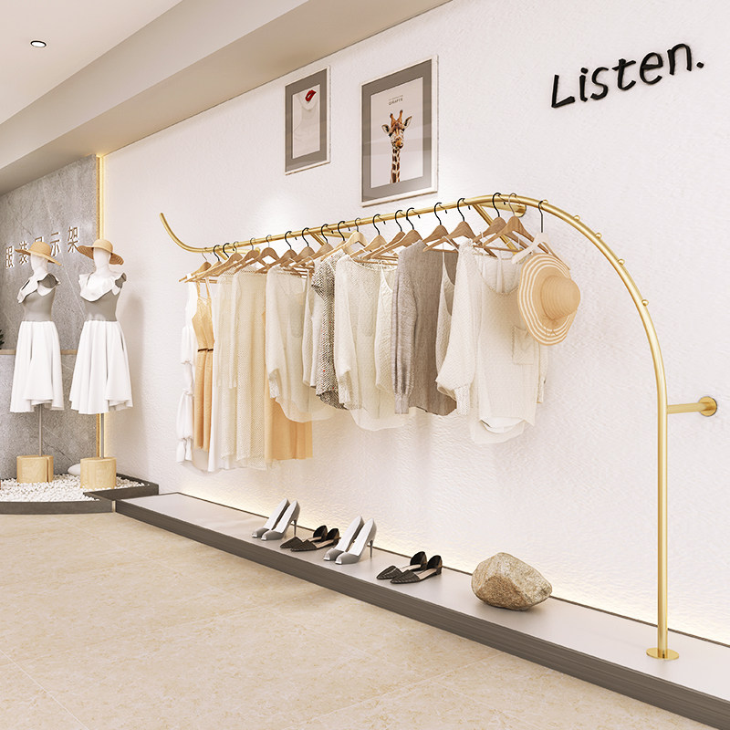 Clothing store display frame floor women's clothing store wall hanging-mounted simple display shelves simple hanging bar iron