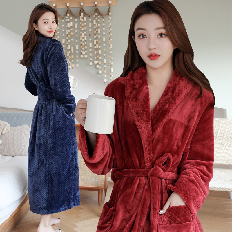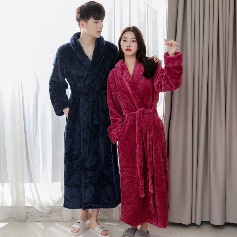 Sleeping robe men's winter thickened with long version of flange suede bathrobe women's winter coral suede pajamas with an increased code couple morning robes