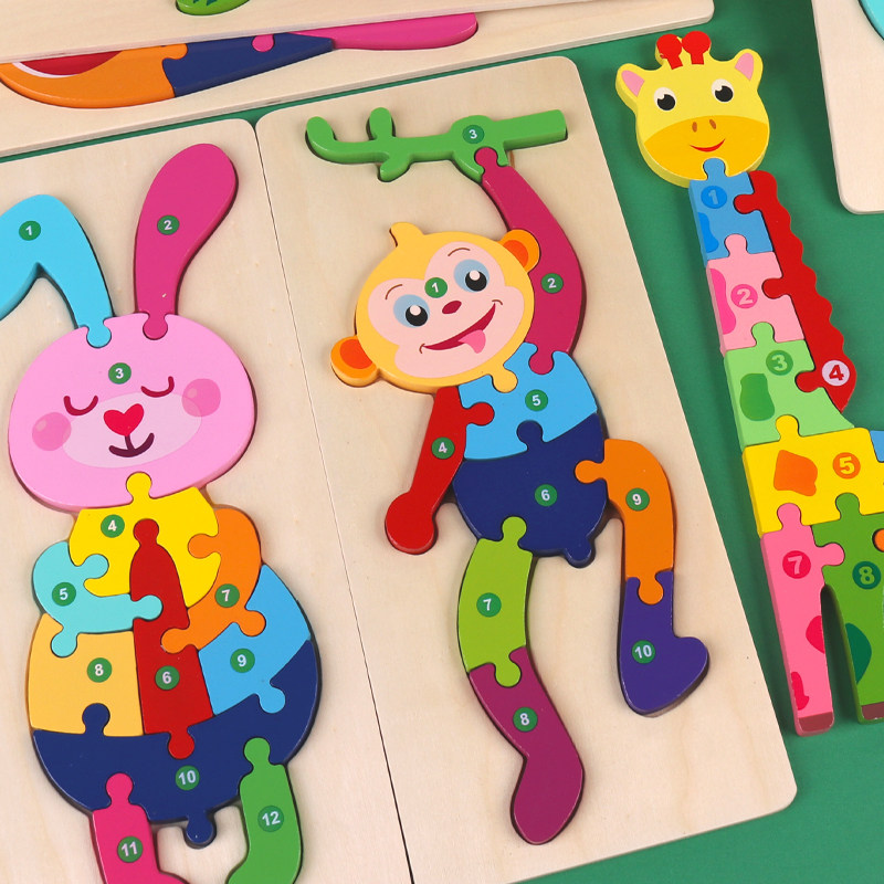 Baby puzzle children 1 2 2 2 3D and semi - stereo wood early education - yield intelligent dinosaur digital boy and girl building block