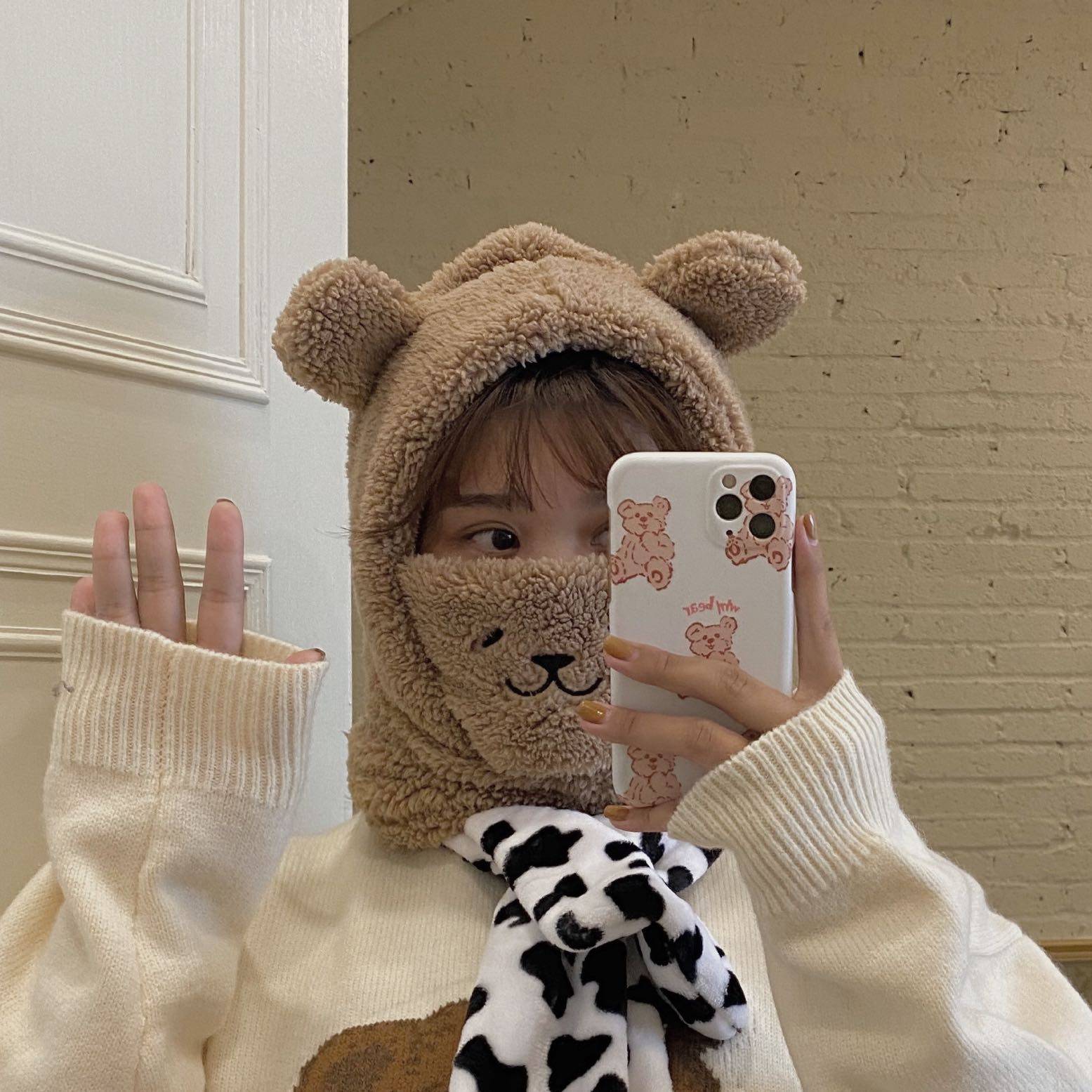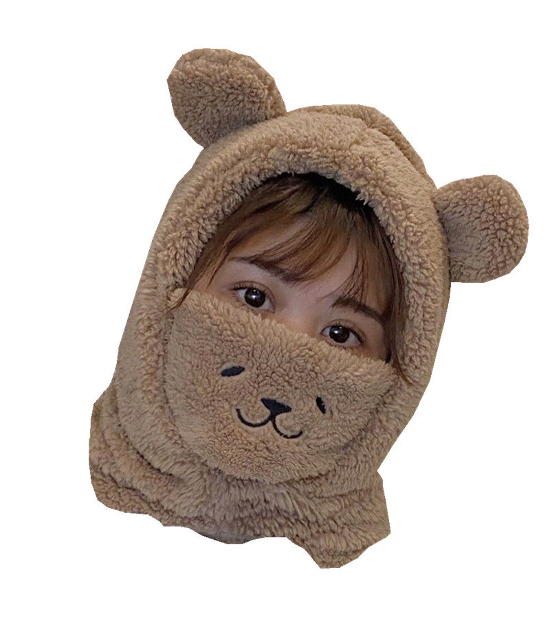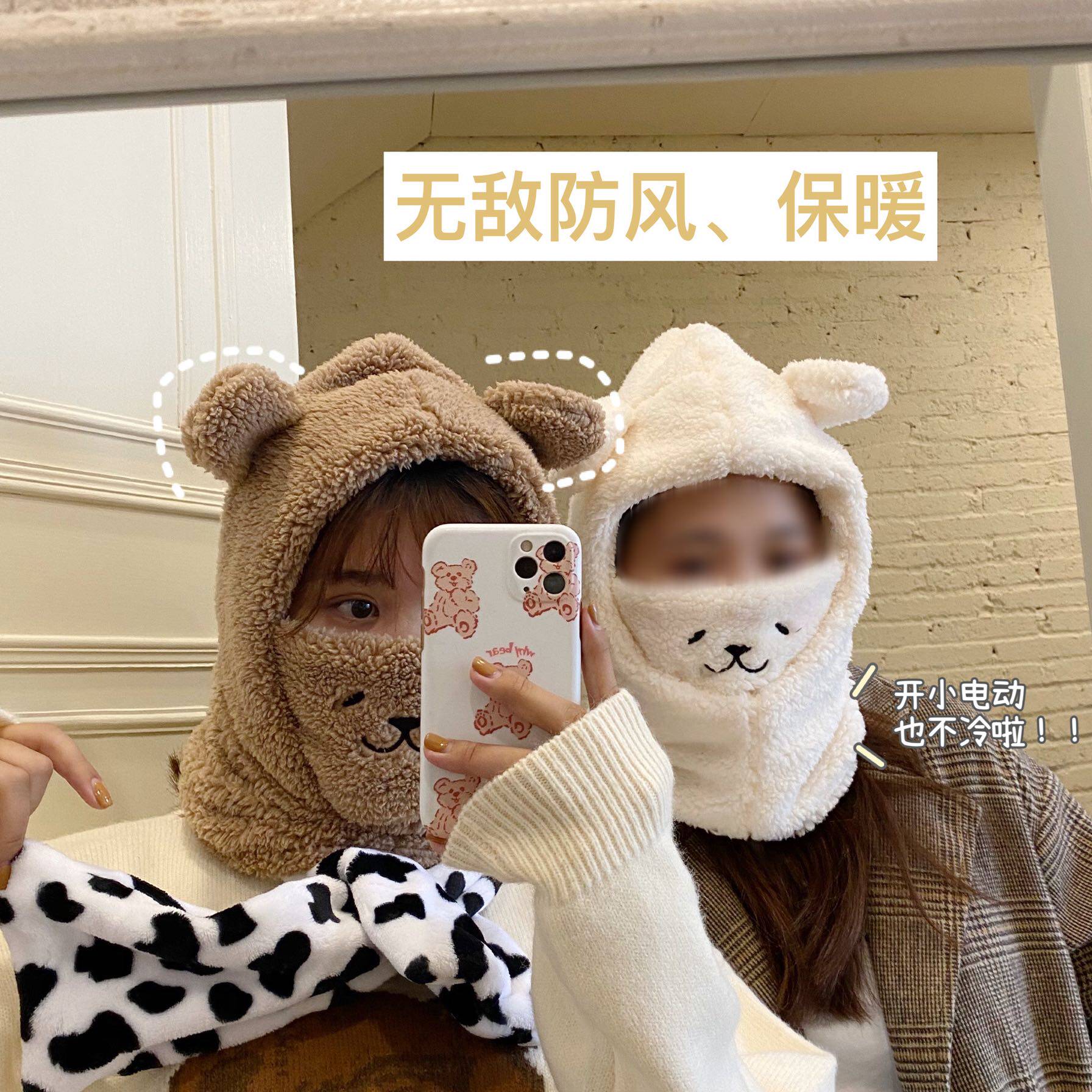 Couple windproof warm hat, scarf, face, cute bear ears, headgear, neck cover, hat, scarf, one for men and women