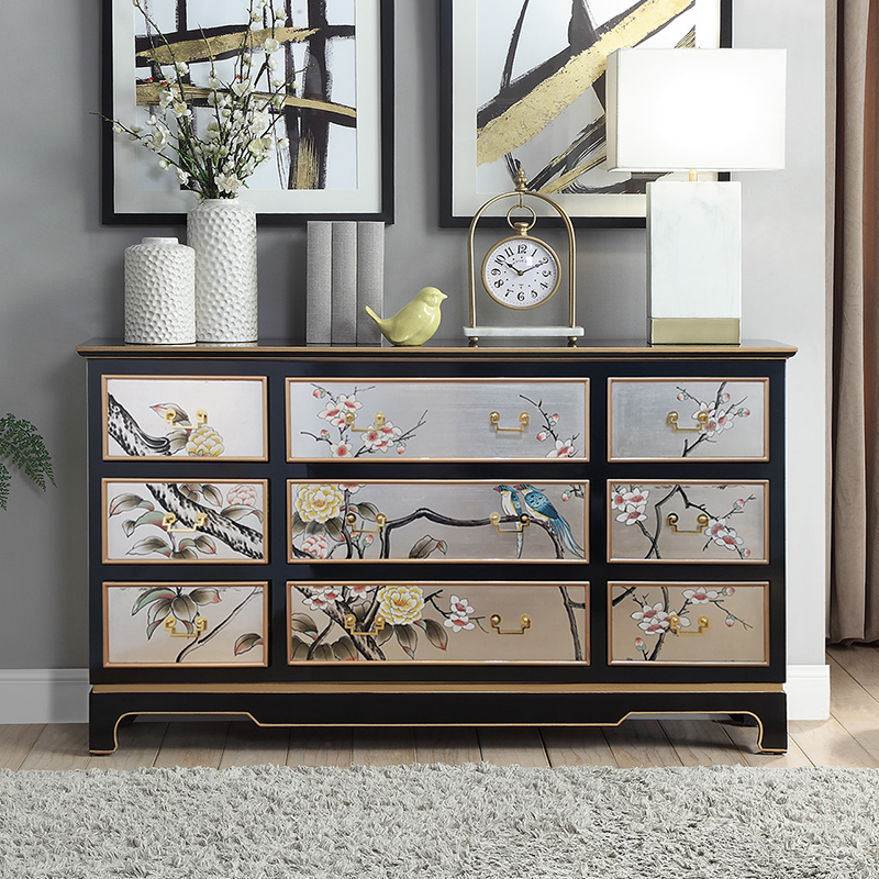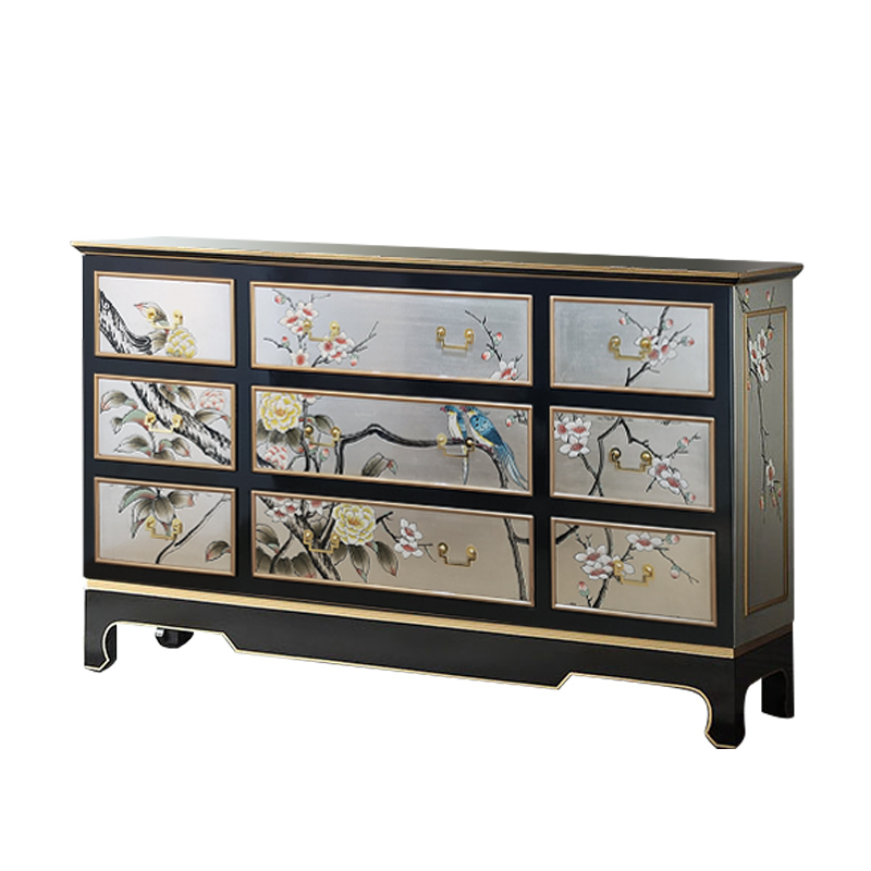 New Chinese style chest of drawers Solid wood simple modern storage cabinet bedroom Painted storage cabinet living room nine drawer chest