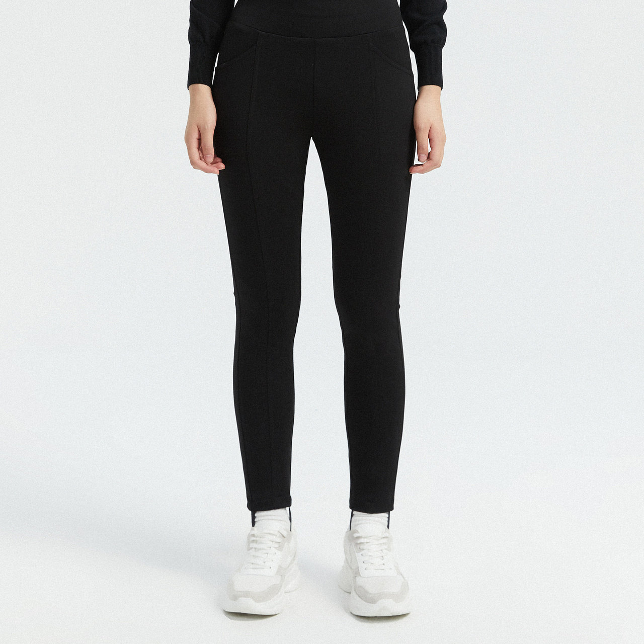 Poddon 2021 New down pants female outside wearing black minimalist elastic display slim beating bottom warm long pants winter