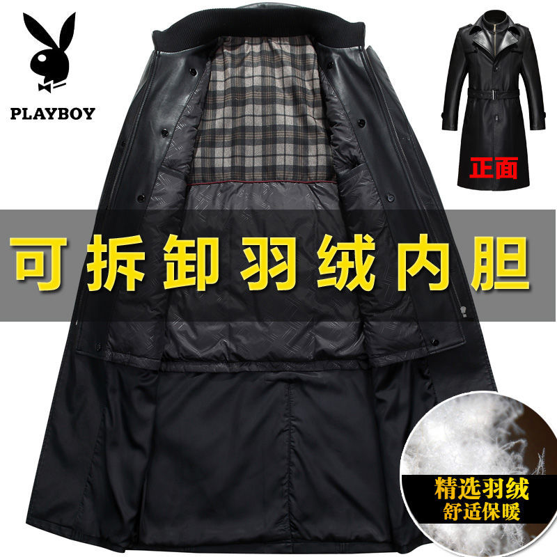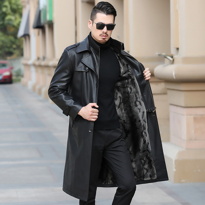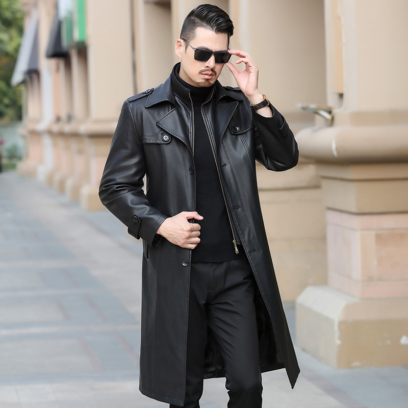Floral Playboy Men's version of Henning genuine leather clothing Sheep leather papa dress jacket over kneecap soft leather windsuit thickened