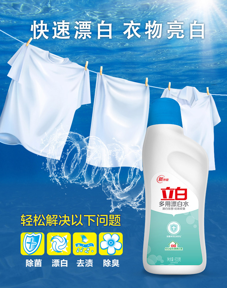 Liby multi-purpose bleach 600g * 3 bottles of white clothing stain string color whitening to yellow and mildew bleach promotion