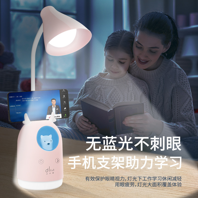 LED eye-guarding table lamp small night light mobile phone support wireless student desk dorm learning dedicated bedroom charging