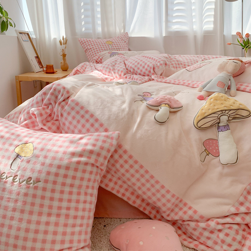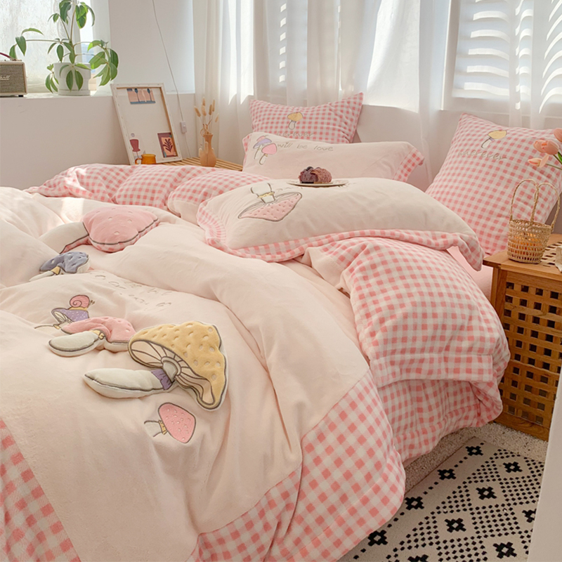 Thickened milk velvet four-piece winter coral velvet double-sided velvet flannel plus velvet bed sheet quilt cover 1 8m bed cover