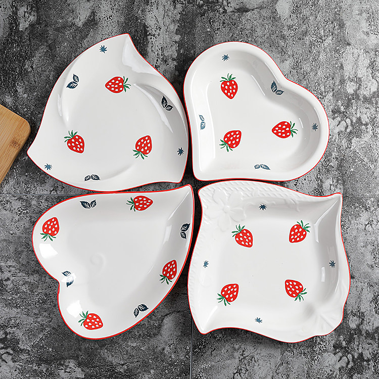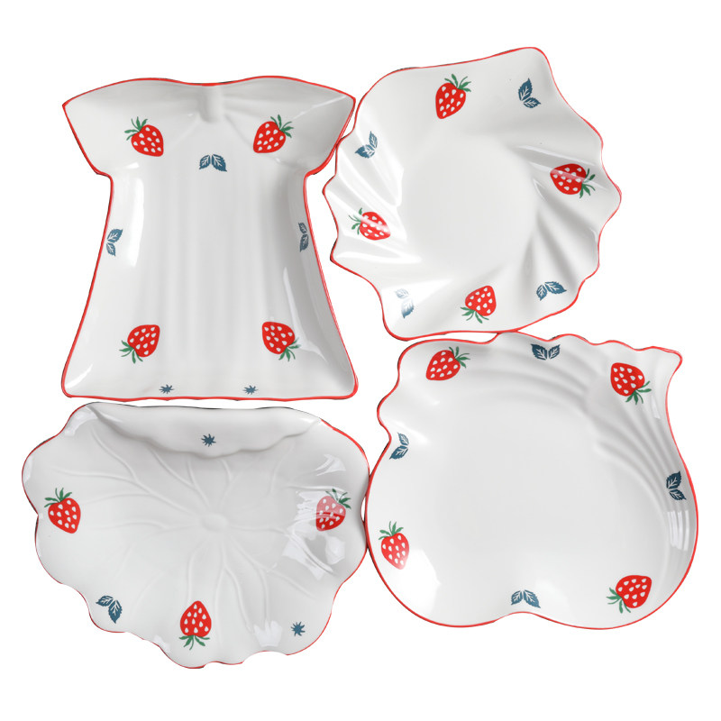 Home Ceramic Tray Cutlery Sets Dining Room Plate Soup Pan Creative Plate Mesh Red Pan Microwave Breakfast Dish