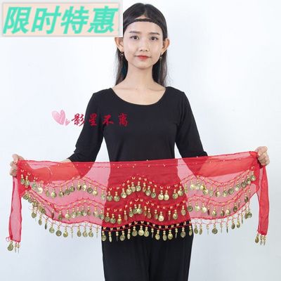 Womens Chiffon Gold Coins Indian Belly Dance Hip Skirt Belt