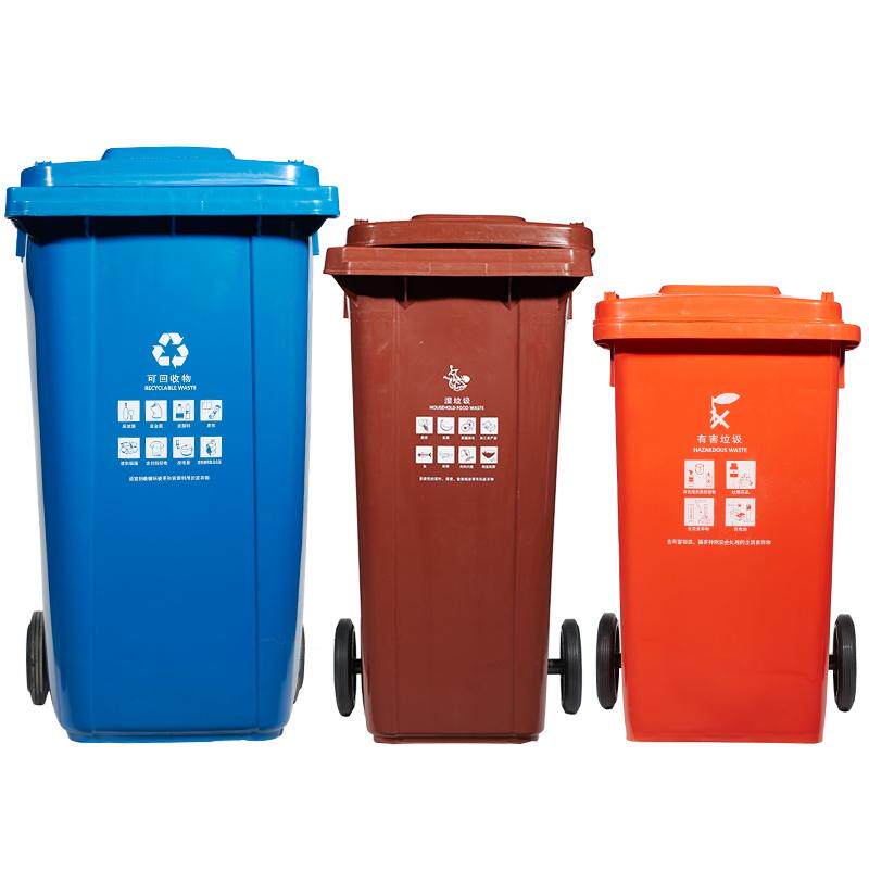 100 Litres Thickened Barrel Coffee Color Wet Trash With Wheels 100 Liters Thickened Barrel Black Dry Trash With Wheels Cover 100 Litres Thickened Barrel Blue Recyclables With Wheels 100 Liters Thickened Barrel Red Harmful