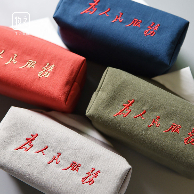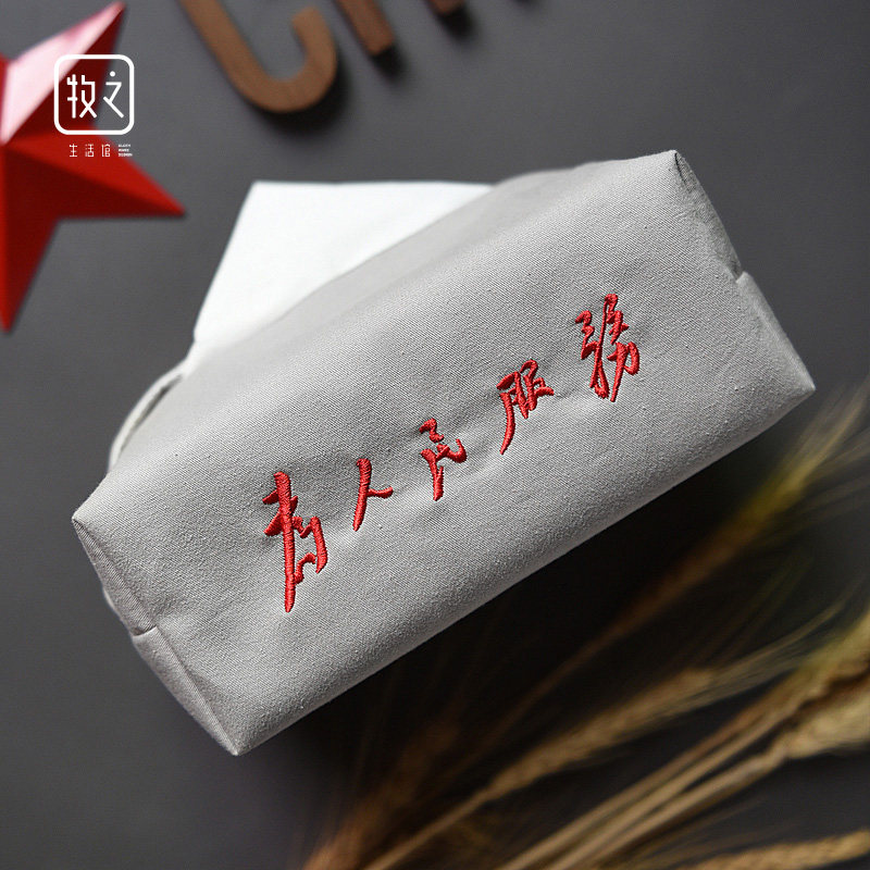 Cultural and creative gifts creative tissue box Fabric desktop pure cotton removable toilet paper set embroidered LOGO bag customization to serve the people