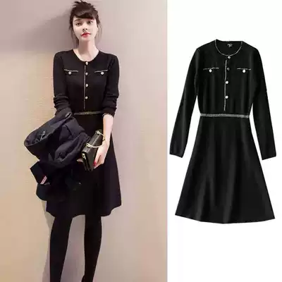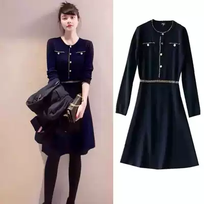 European station 2021 autumn clothes new professional age reduction temperament sweater skirt light mature wind waist bottom knitted dress
