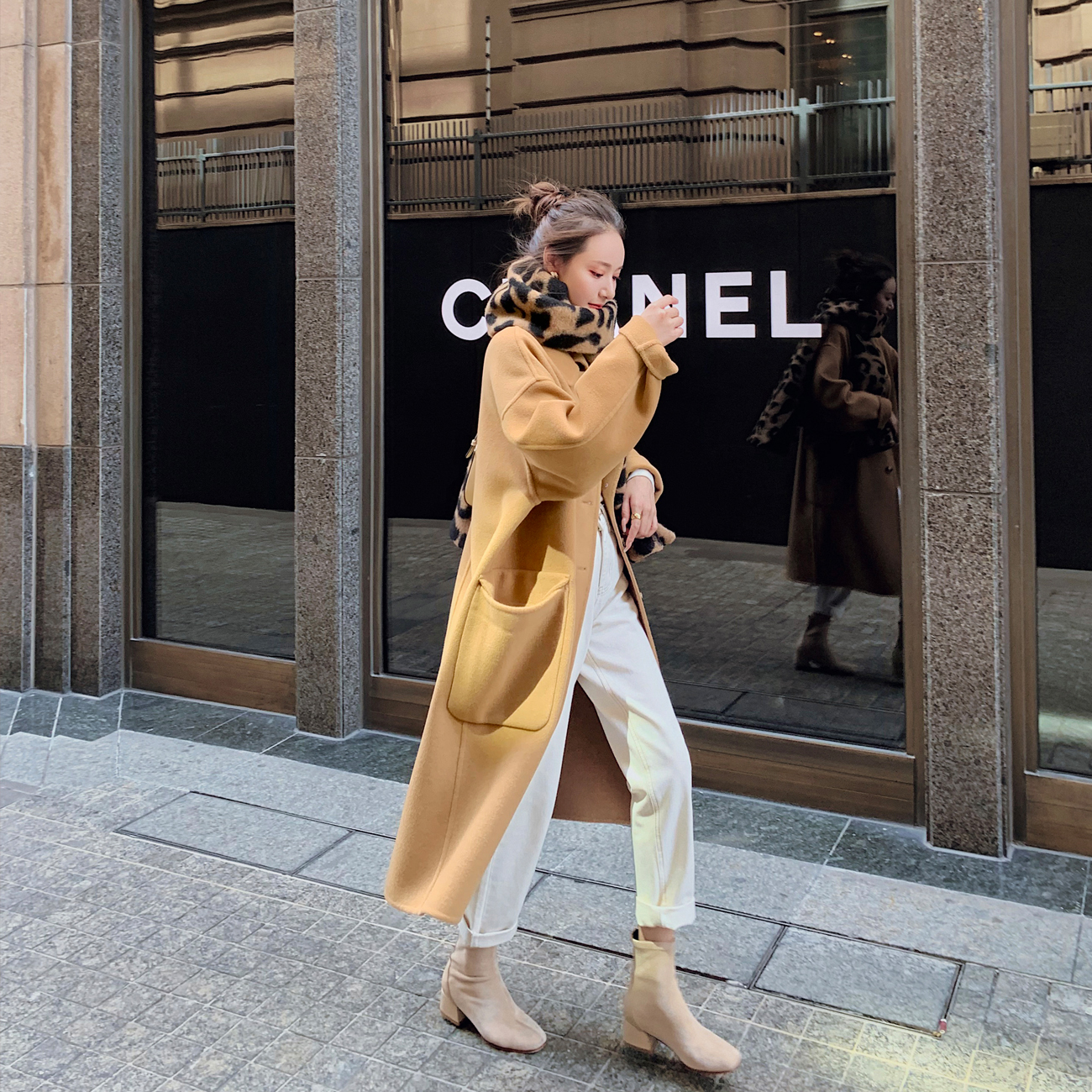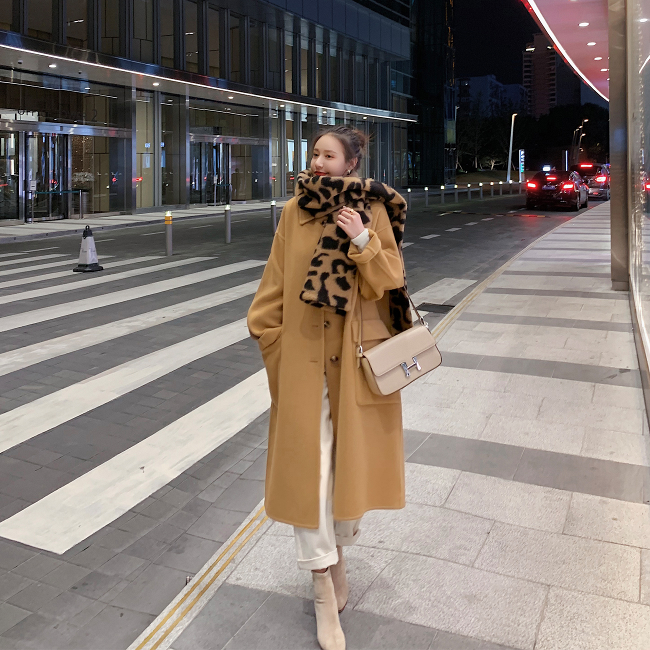 The big tip coat girl 2022 Fall and Winter Popular Loose temperament of Huben Wind Australian wool double - sided coat