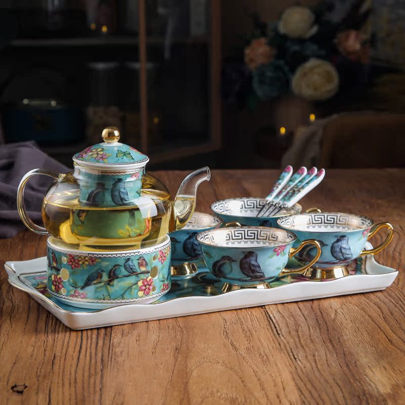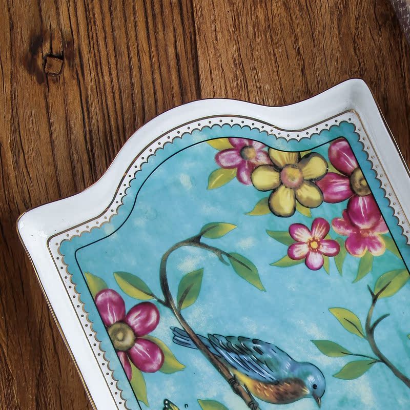 Eurostyle ceramic rectangular kettle mug tea cup tray home living room decorated with afternoon tea pastry tray water fruit tray-Taobao