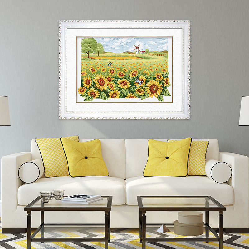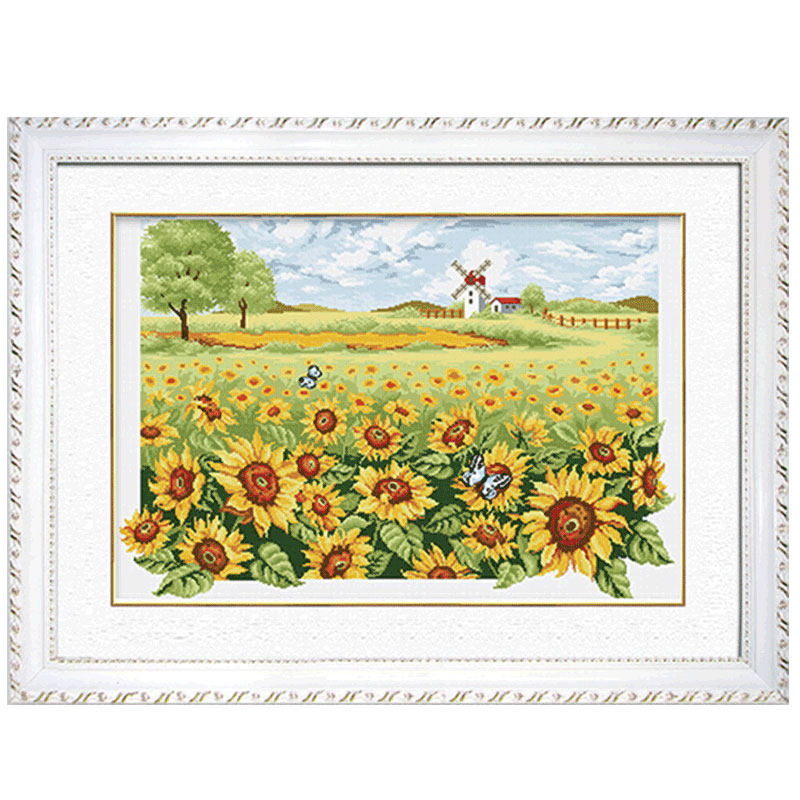 KS Cross Embroidered Sunflower Garden Hand Itself Embroidered Landscape Painting Fields Garden Style Living-room Plant Flowers 2019 new