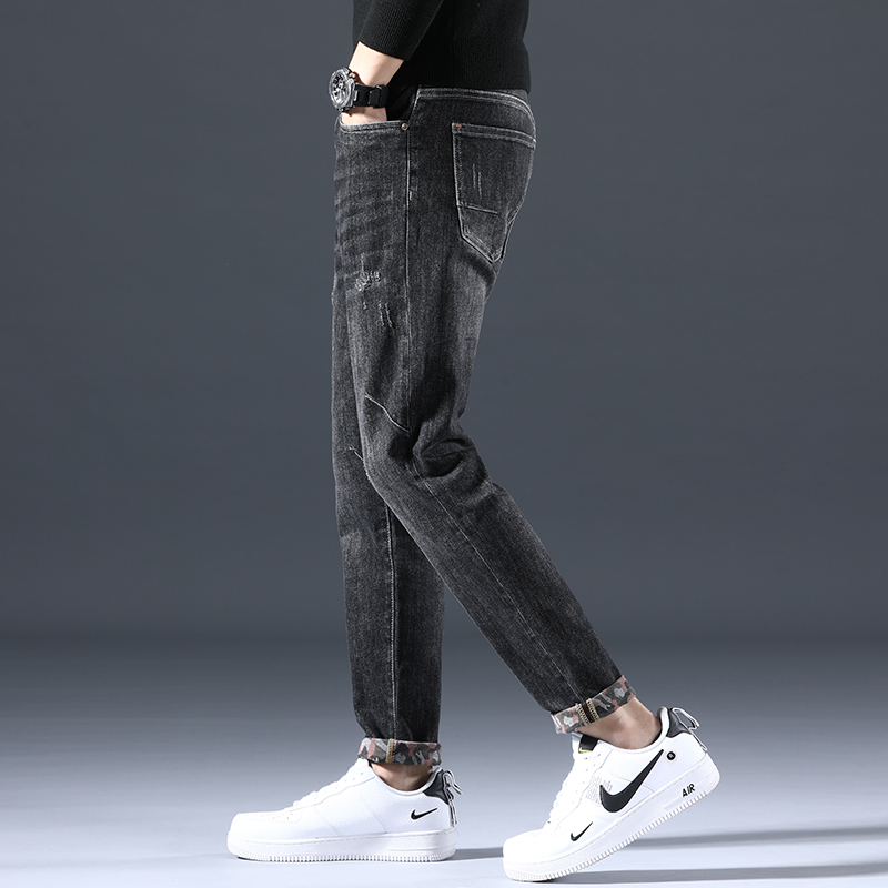 Hong Kong High-end Denim Pants Tide Cards Fall New Body Small Feet Straight Barrel Men Casual 100 Hitch Pants Men's Clothing
