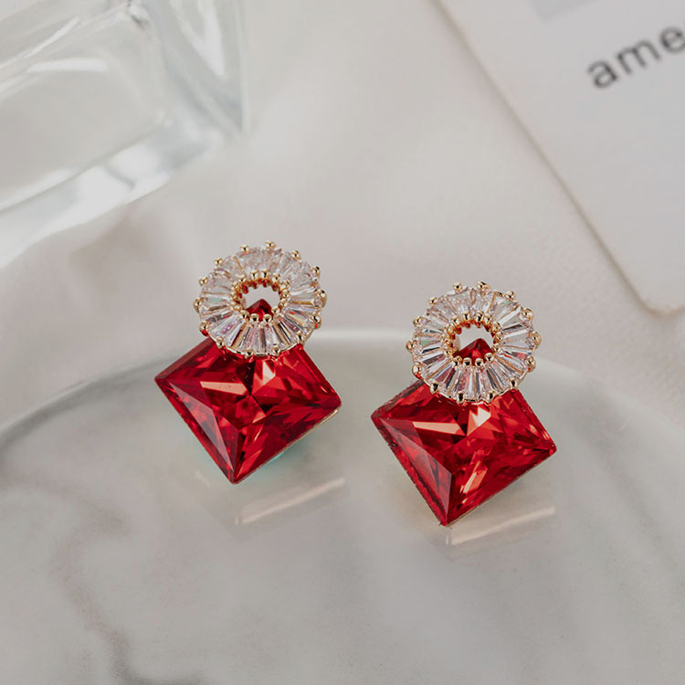 Red earrings 2022 new trend zirconia stud earrings niche design sense femininity high-grade sterling silver light luxury atmosphere
