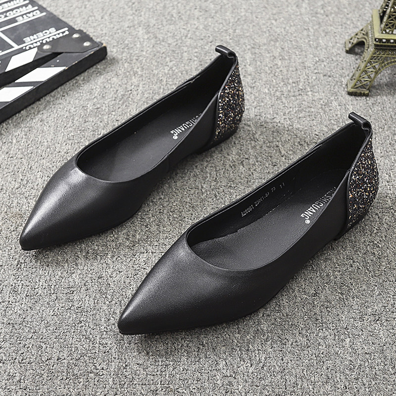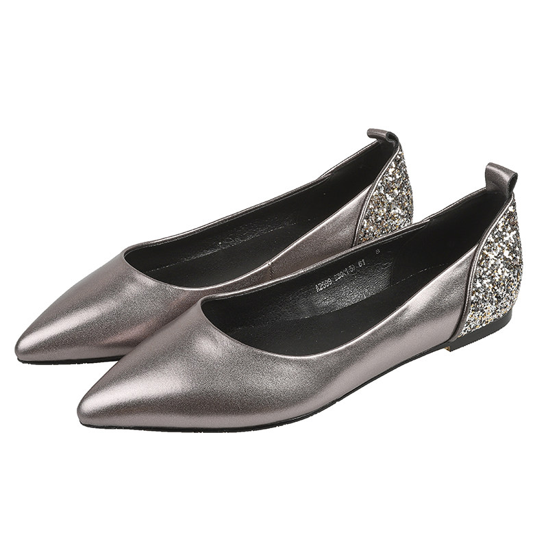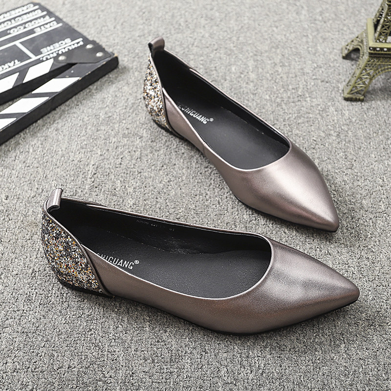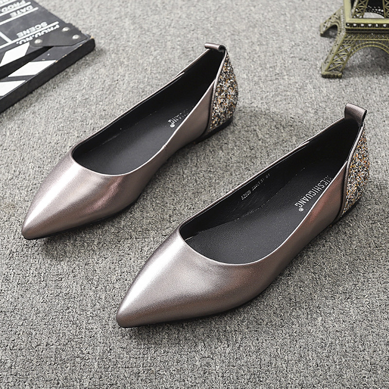 Pointed toe flat single shoes women 2022 autumn new shallow mouth leather slip on boat shoes scoop shoes all-match sequined women's shoes