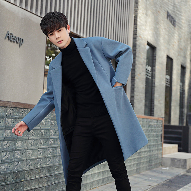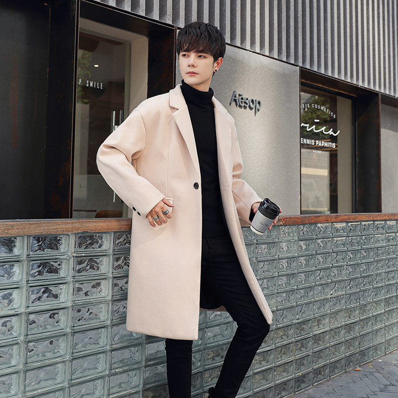 Spring Nicson coat men's medium long version Korean version handsome 100 hitchhiking men's body fur coats men's Inn wind