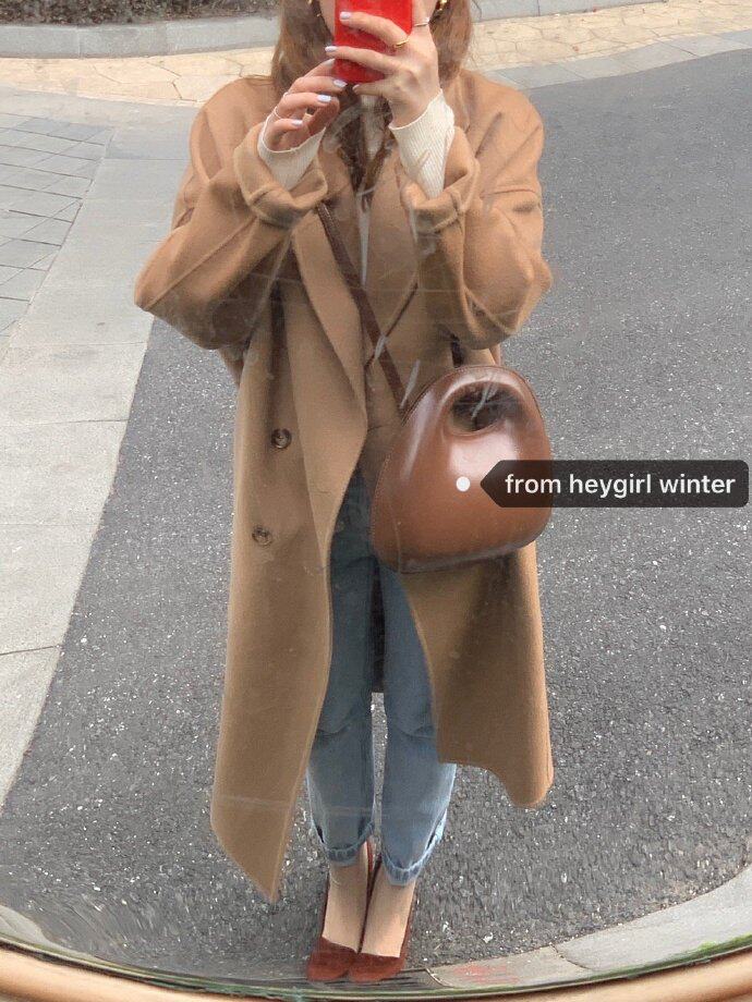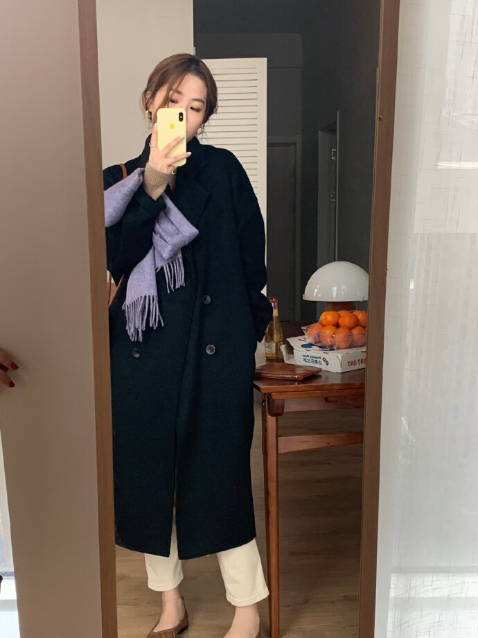 HEYGIRL Black Brother Korean version of loose long double-sided coat female temperament over knee hair jacket autumn and winter