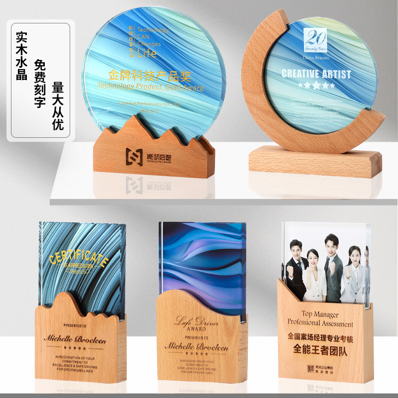 Solid wood crystal trophy creative custom K9 medal custom-made authorized company anti-epidemic community volunteer souvenirs