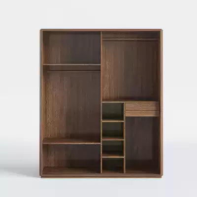 Walnut full solid wood wardrobe Nordic log light luxury modern simple two-door push-pull master bedroom wooden large wardrobe