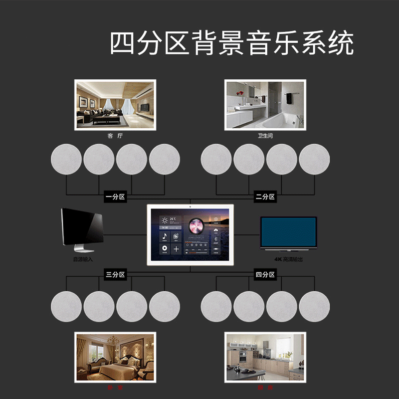 10 inch audio control panel host home intelligent background music system Living room decoration ceiling speaker set