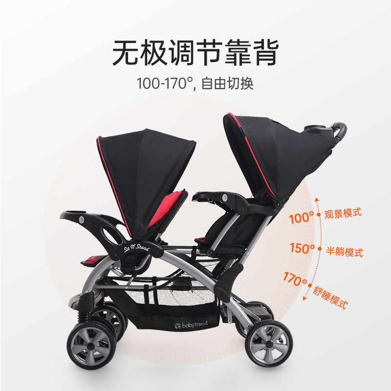 Babytrend Twin Baby Four Wheel Cart Two-Child Artifact Lightweight Folding SS76