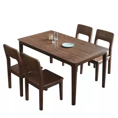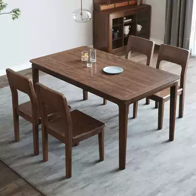 Walnut pure solid wood rectangular dining table Nordic modern minimalist household dining table small apartment dining table and chair combination