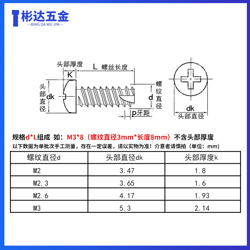 M2M2 M2M2 3M2 6M3 6M3-head cut-tail self-tapping