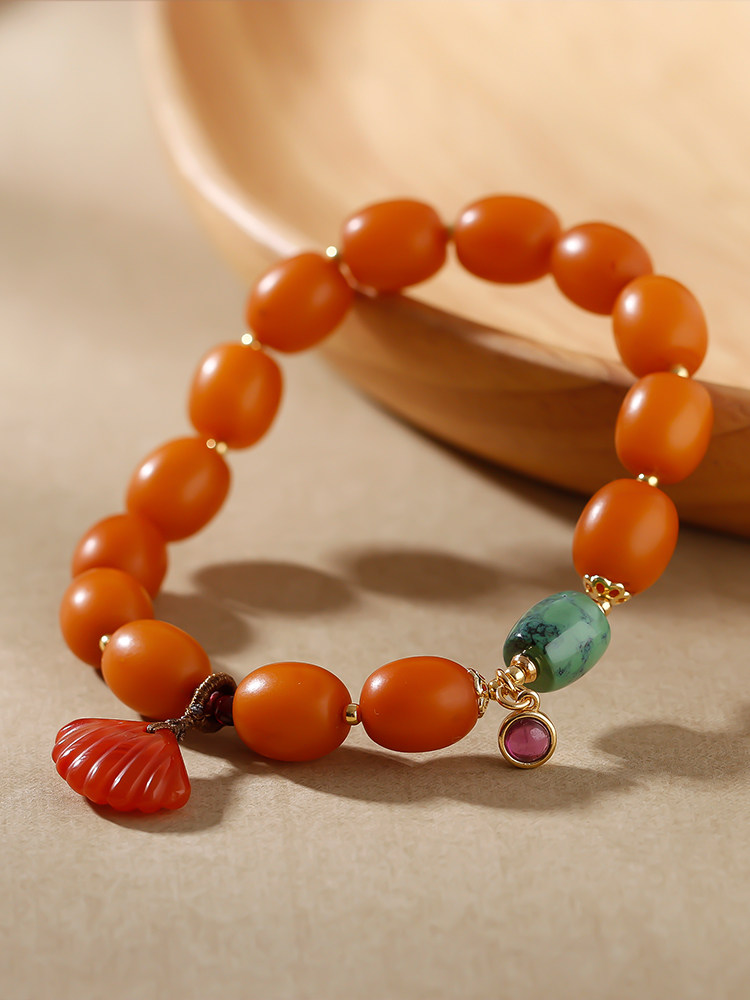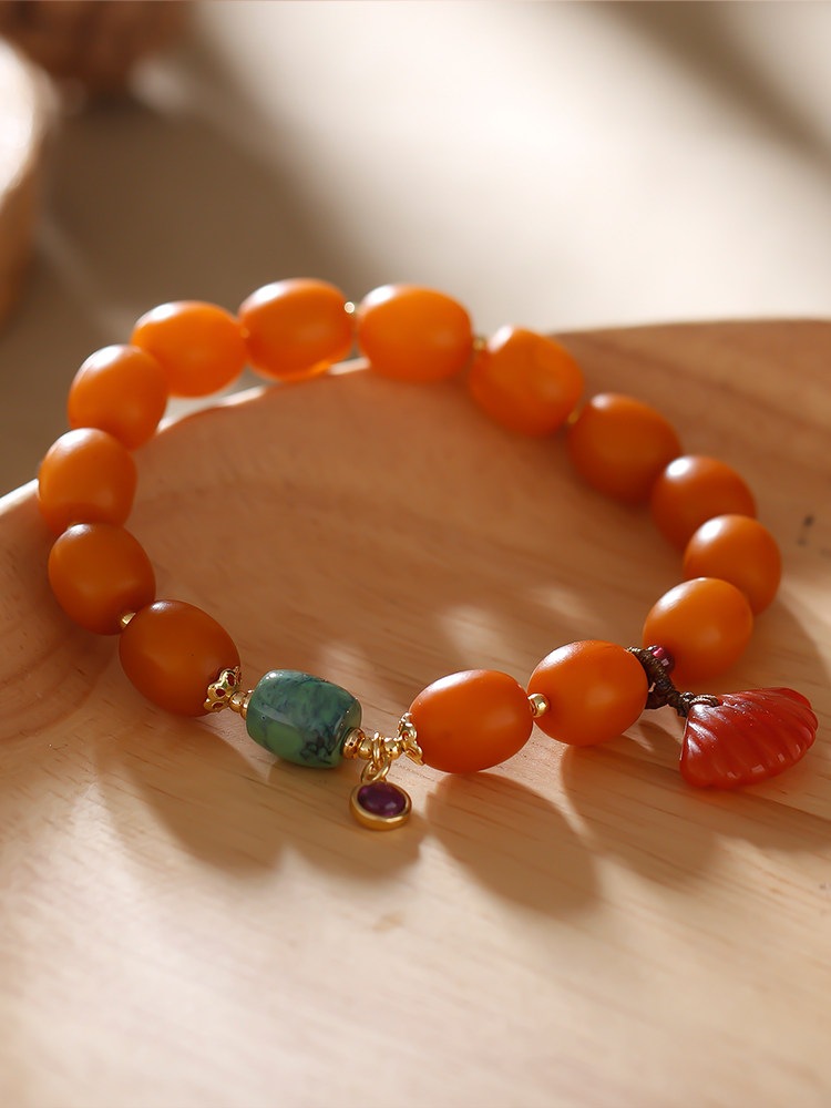 Pucai Natural Amber Beeswax Bracelets Chicken Oil Yellow Old Candied Date Beads Single Ring Bracelet Nanhong Pendant Hand Jewelry