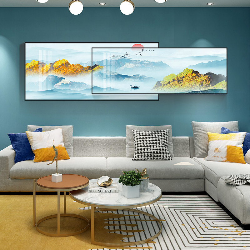 Golden Mountain Kawa Light Extravagant Living Room Decoration Painting Modern Minimalist Sofa Background Wall Back With Mountain Atmospheric Banners Hang Paintings