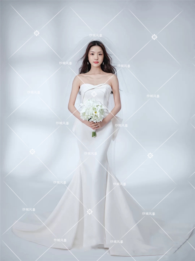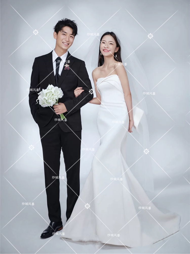 Studio Studio New Theme Wedding Dress Korean Style Simple Satin Mermaid Elegant Dress Couple Photo Costume