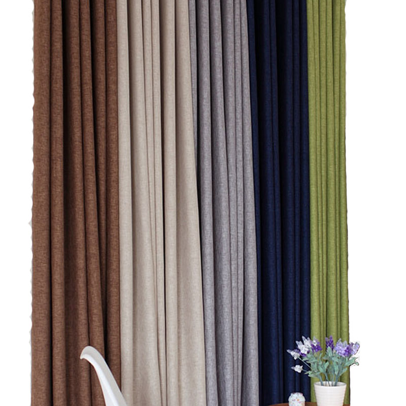 Nordic style curtains custom made simple modern American linen solid color gray green bedroom shading