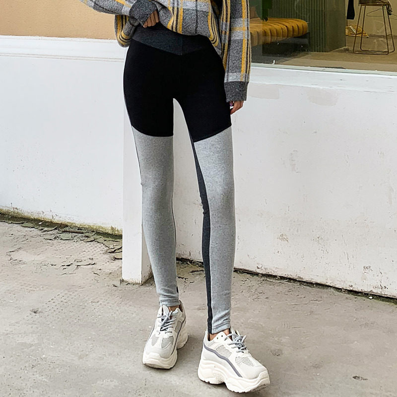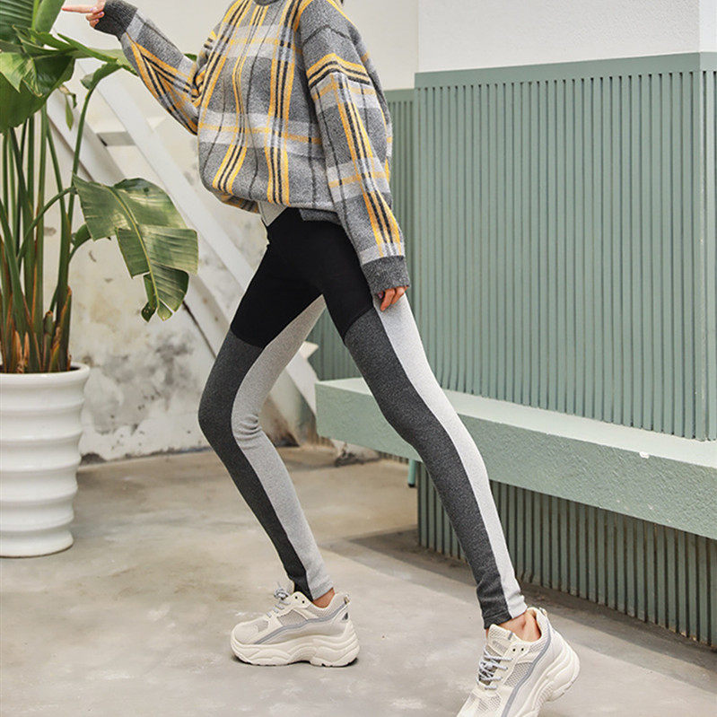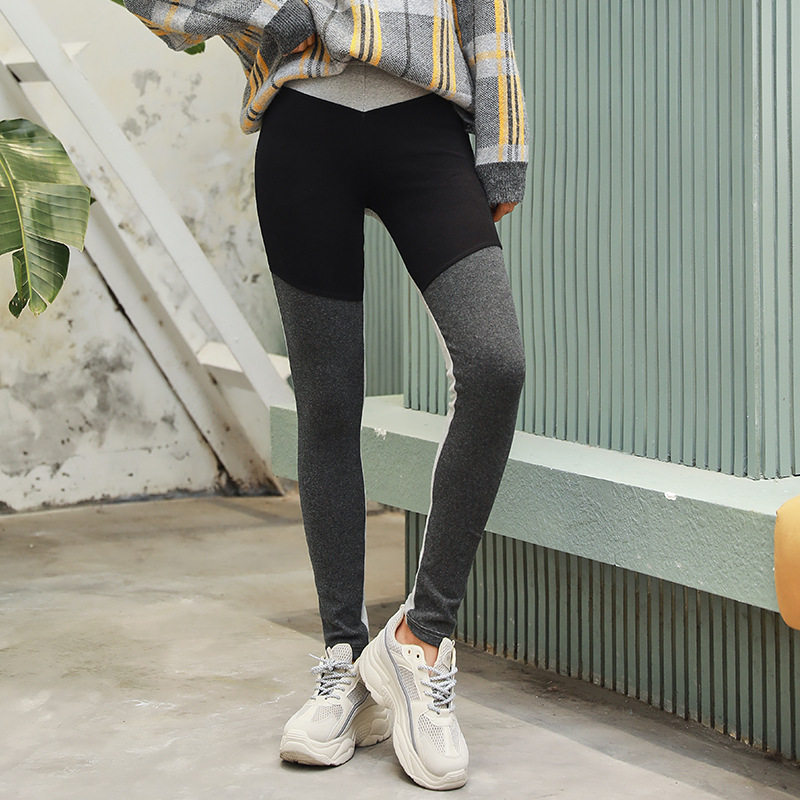 Put the pants in spring and autumn winter high waist nine thin black and thin tight gray plus velvet paste