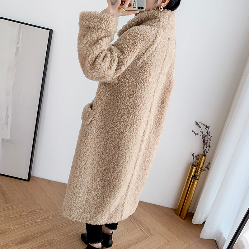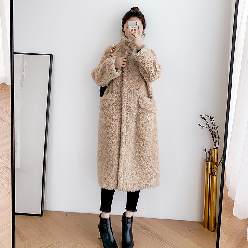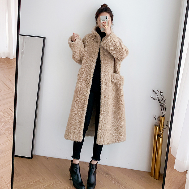 2020 new lamb wool coat women's mid-length sheep shearing coat with fur integrated Haining fur stand-up collar windbreaker