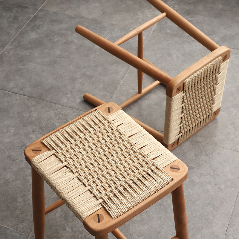 Tube carpenter Nordic woven stool Japanese makeup stool square stool solid wood stool cherry wood makeup stool woven dining stool