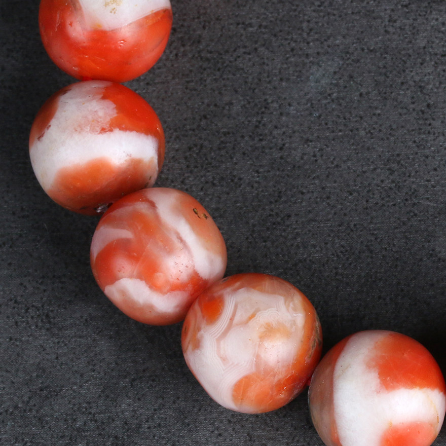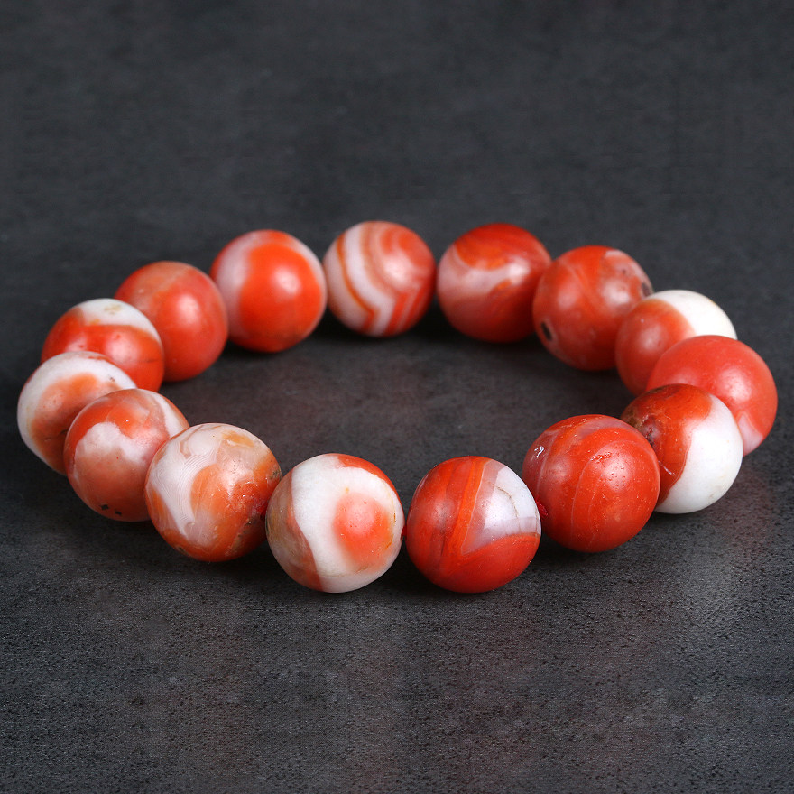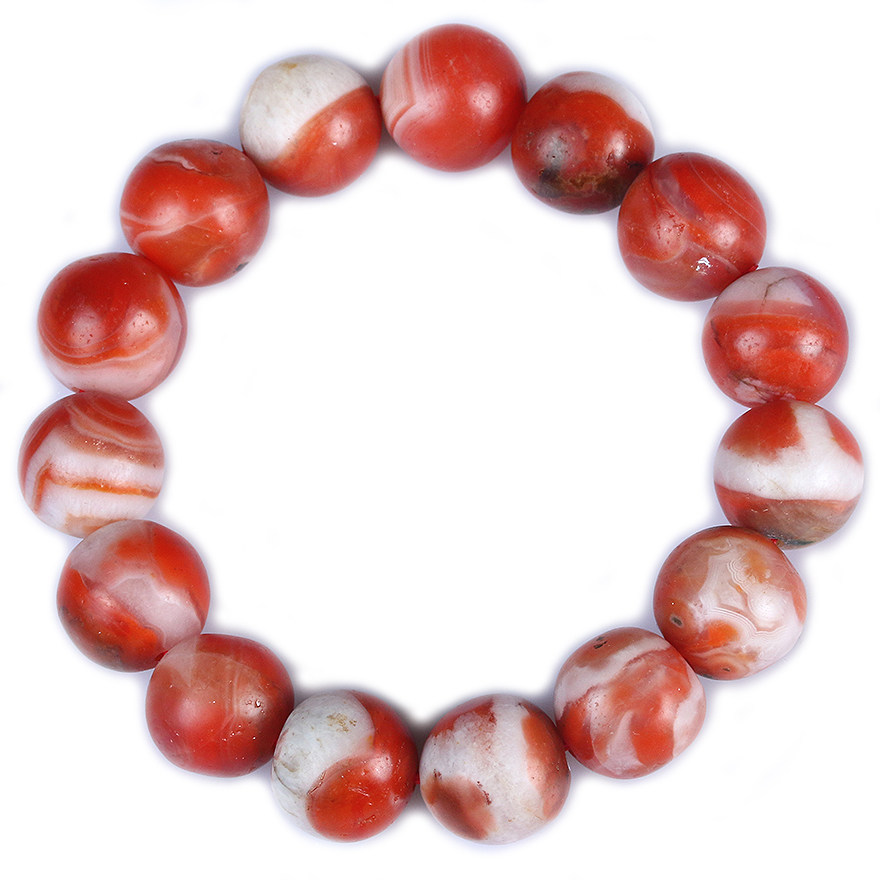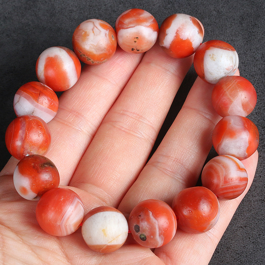 (Featured red and white material) 59.35 grams round color Luster South Red Onyx bracelet bracelet 13.7-14.3mm