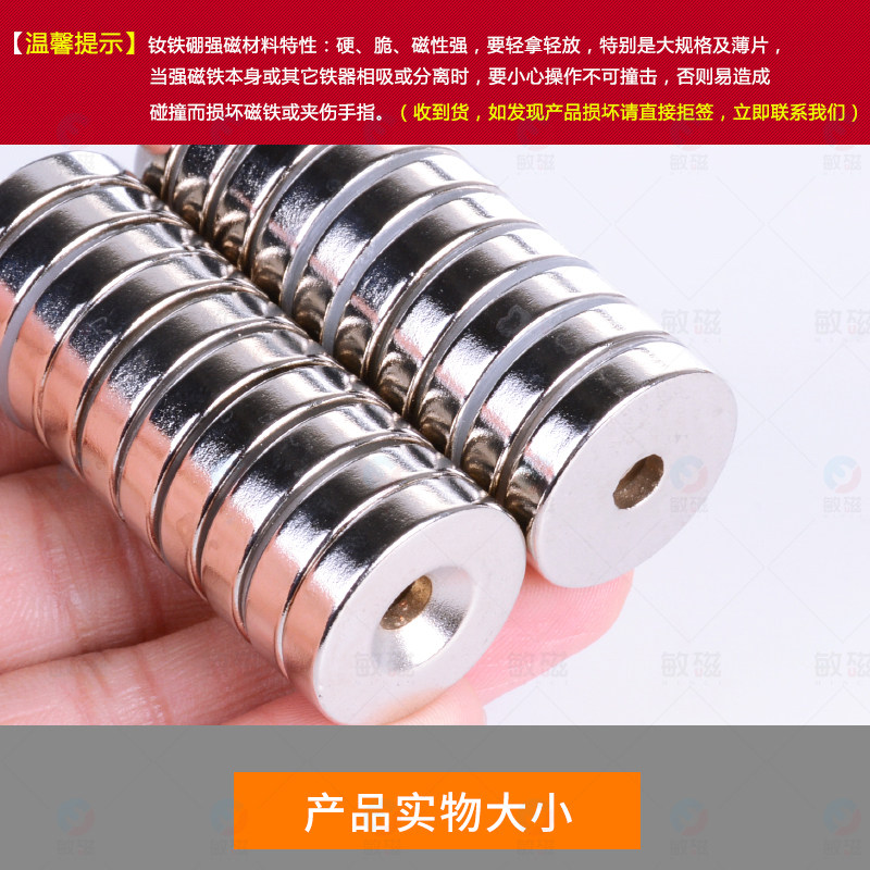 Diameter 22 thick 5 strong neodymium magnet strong magnetic super strong magnet sheet small circular magnet toy hole 5 magnetic ring sheet