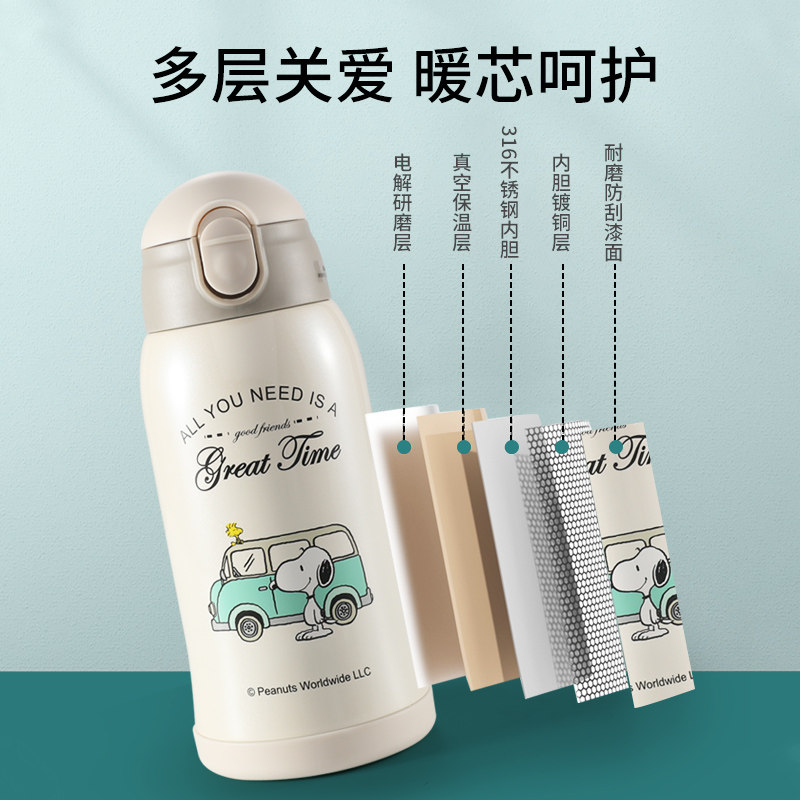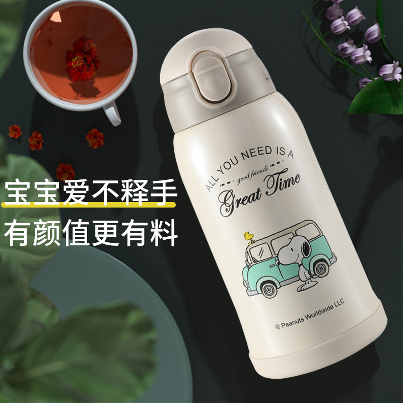 Snoopy children's thermos cup with straw Baby kindergarten students go to school special portable drinking kettle