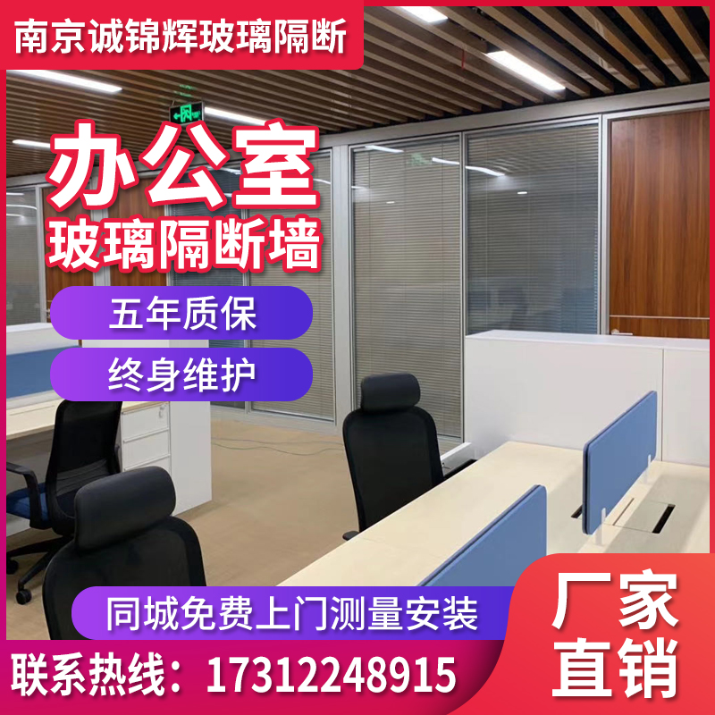 Nanjing office glass partition wall aluminum alloy frosted double layer with louver office high partition tempered glass