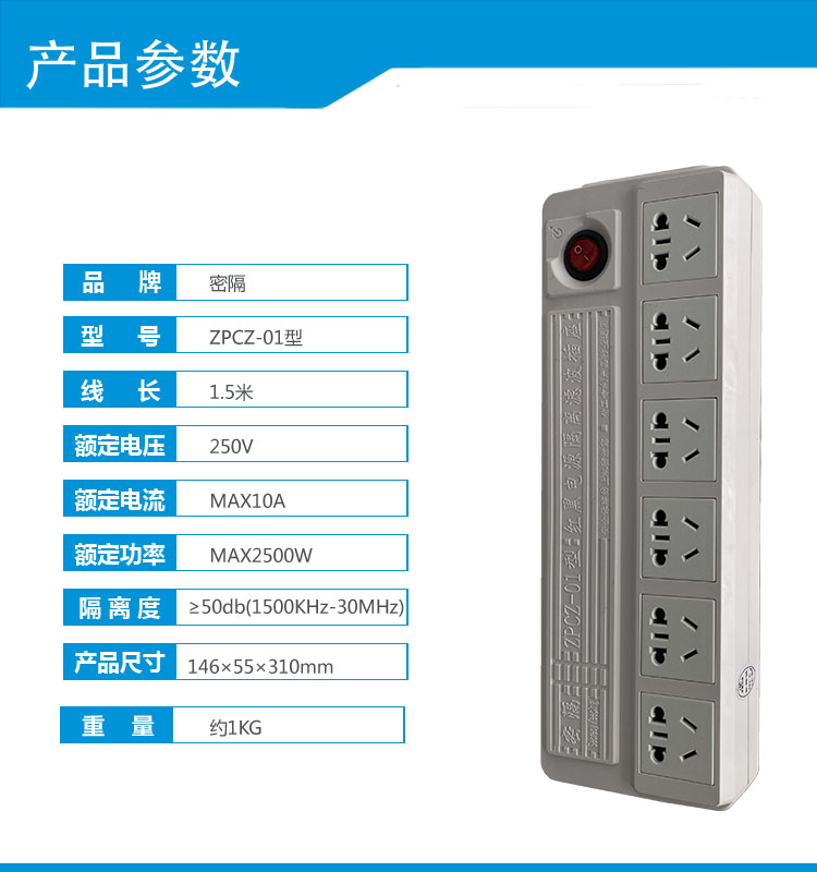Close compartment ZPCZ-01 red black power filtering isolated socket three-in-one switch shielded wire 6 holes with certificate
