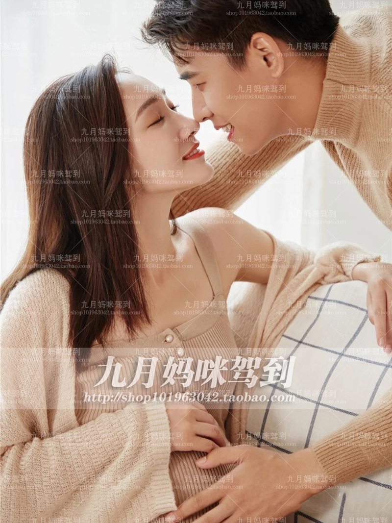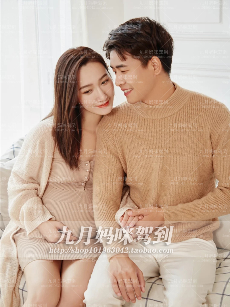 590 Pregnant women photo clothing rental Khaki autumn and winter knitted sweater couple couple photo art photo studio photography