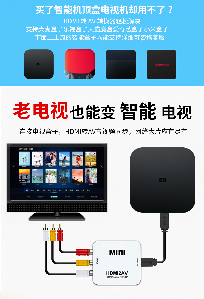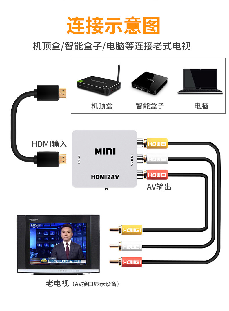 Network set-top box computer high-definition HDMI to old-fashioned TV ordinary AV audio and video red, white and yellow interface converter