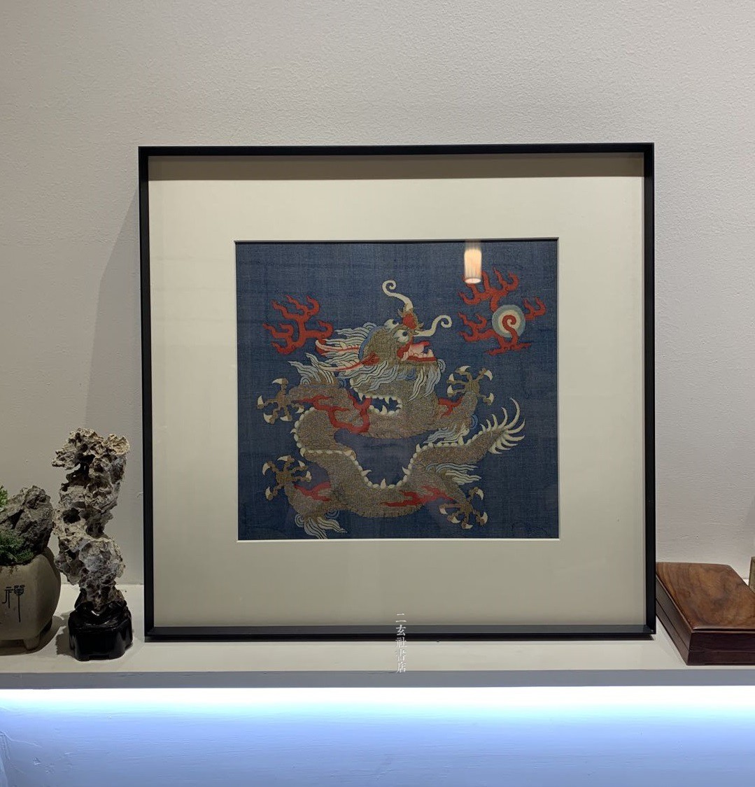 No tinnitus Imitation Qing Palace Five Paws Dragon Tapestry Silk silk This printed copy New Chinese black aluminum alloy frame-Taobao