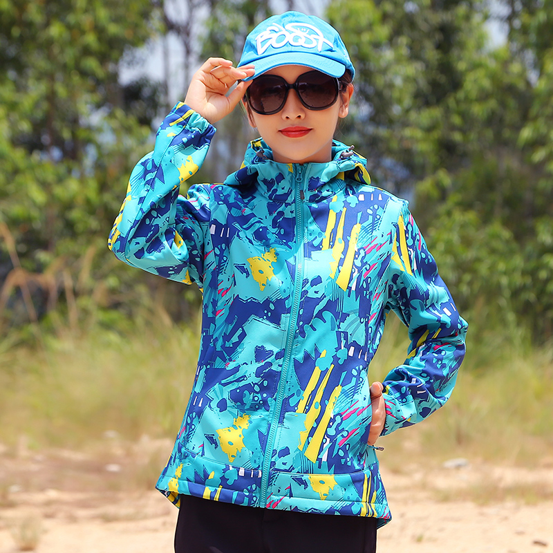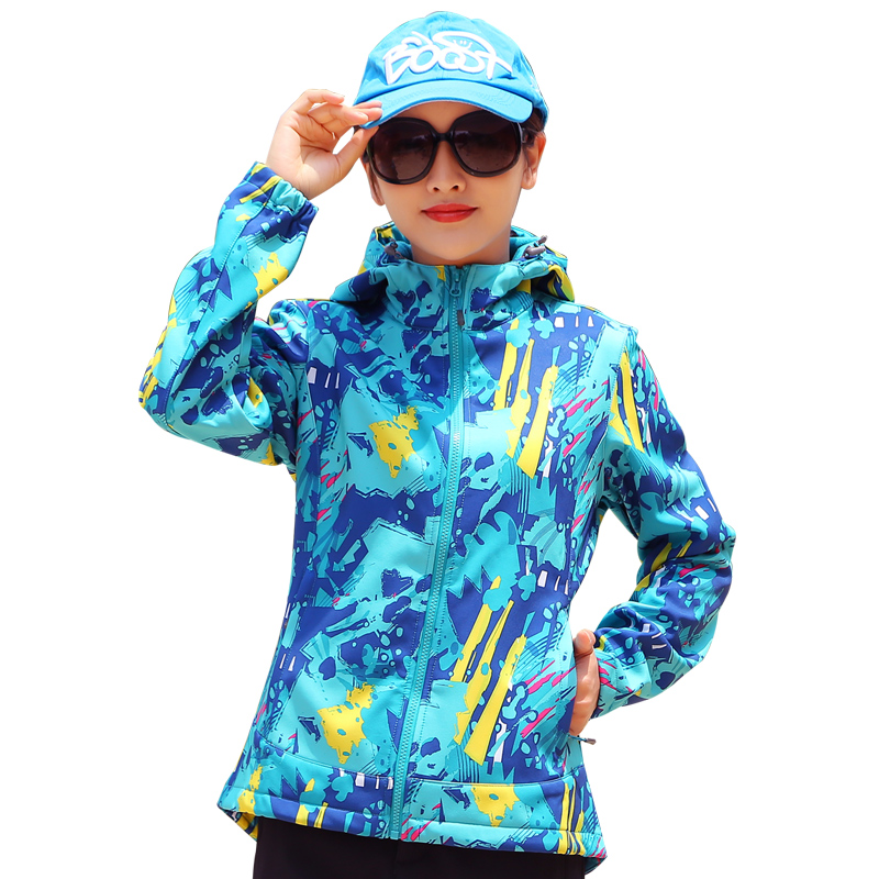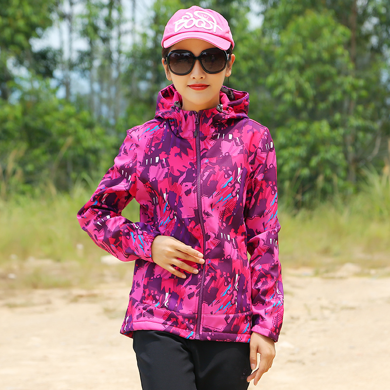 Autumn Winter Style Lady Outdoor Tandem Hat Printed Camouflate Soft Shell Clothing Windproof Warm Mountaineering Tide Jacket Plus Suede Submachine Clothing