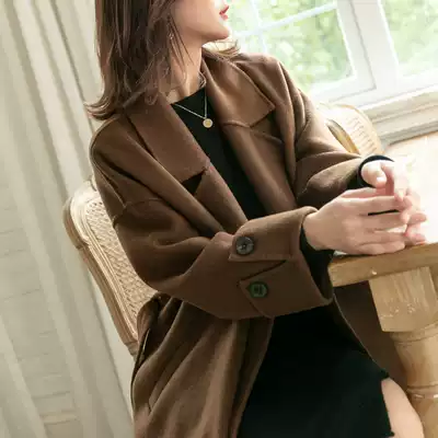 Coffee double-sided cashmere coat women's long version of new autumn and winter loose woolen coat anti-season clearance