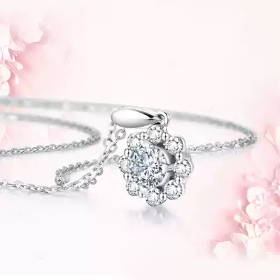 Diamond necklace female 18K gold group set diamond pendant round real diamond clavicle chain to send girlfriend birthday gift