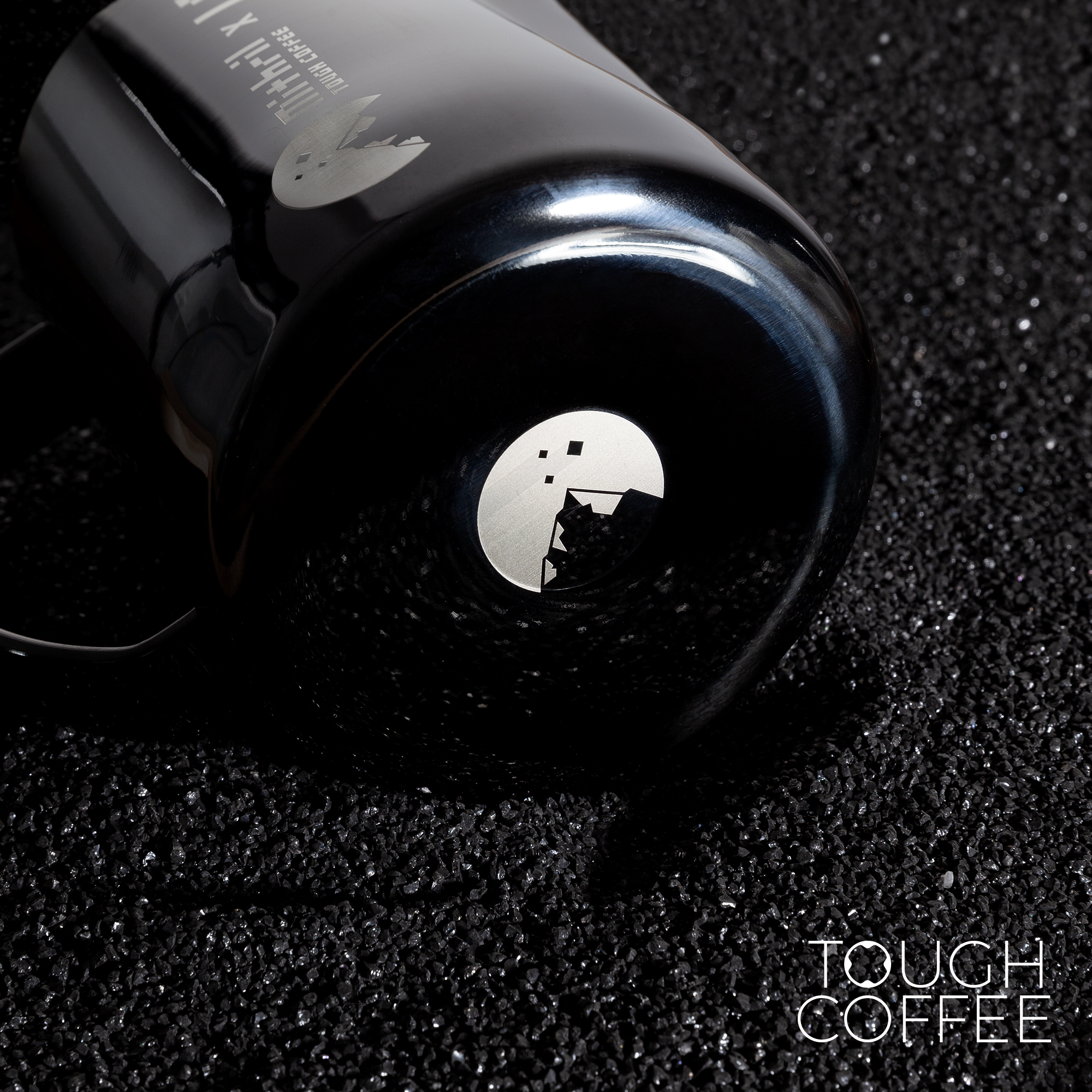 Stubborn Coffee & Liu Qiang joint coffee pull flower jar 600ML pointed black frosted silver