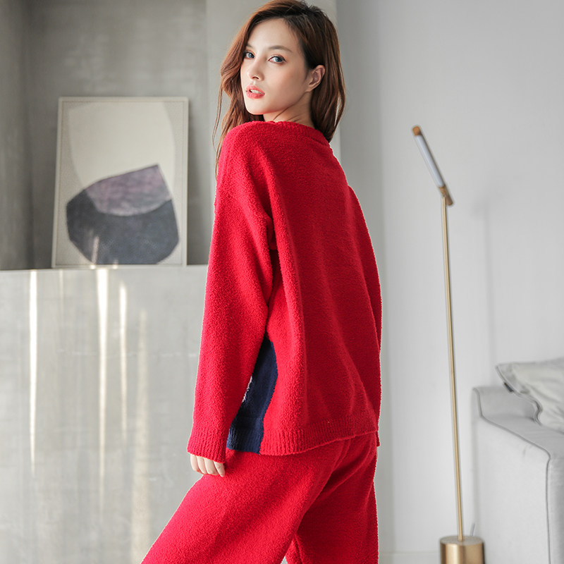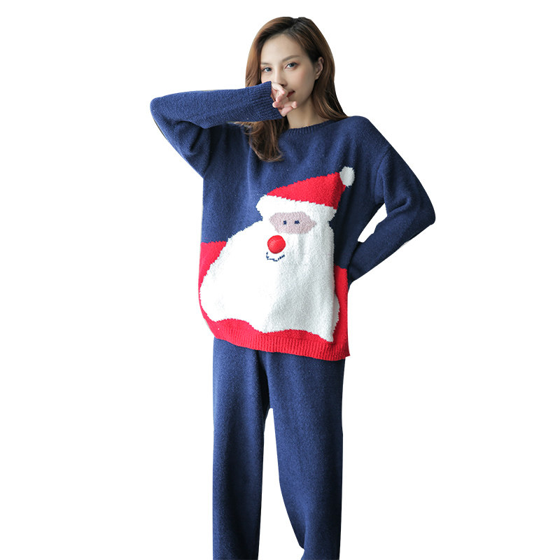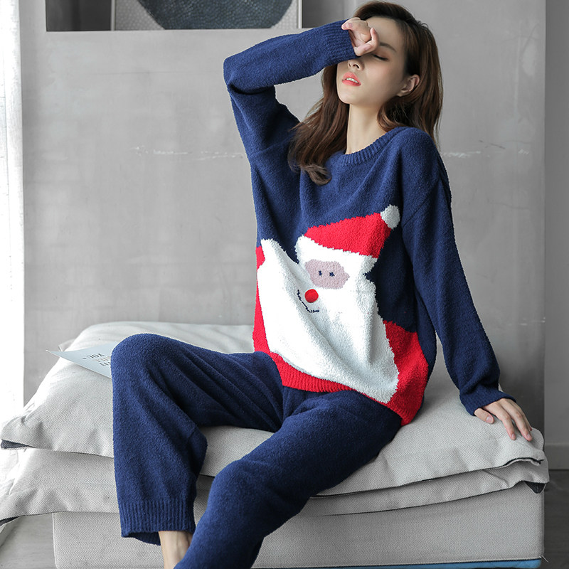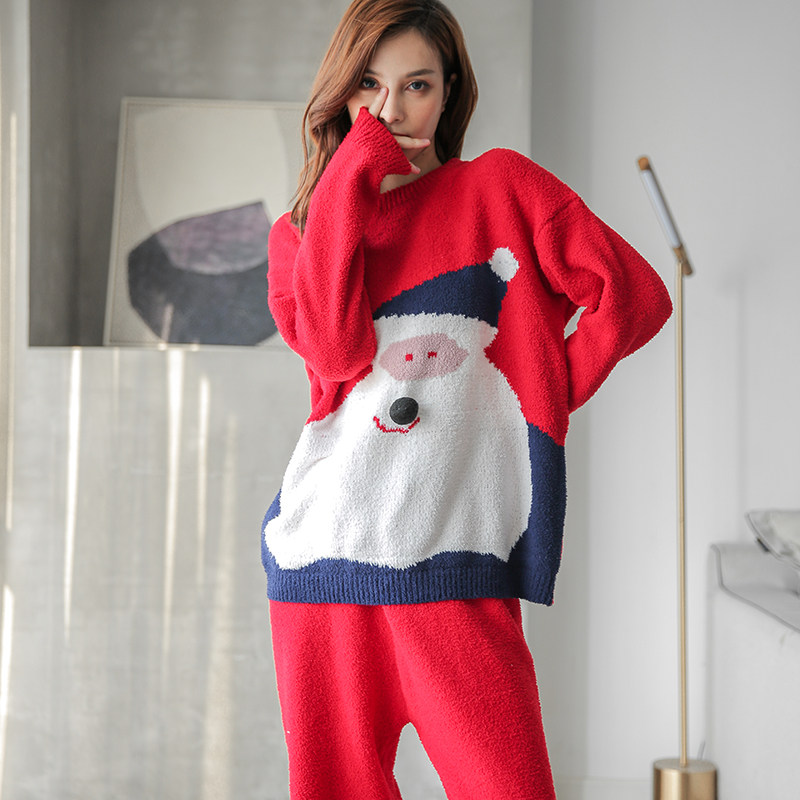 Santa's pajamas autumn and winter women's knitted wool soft pajamas women's half-fleece plush home clothes can be worn outside
